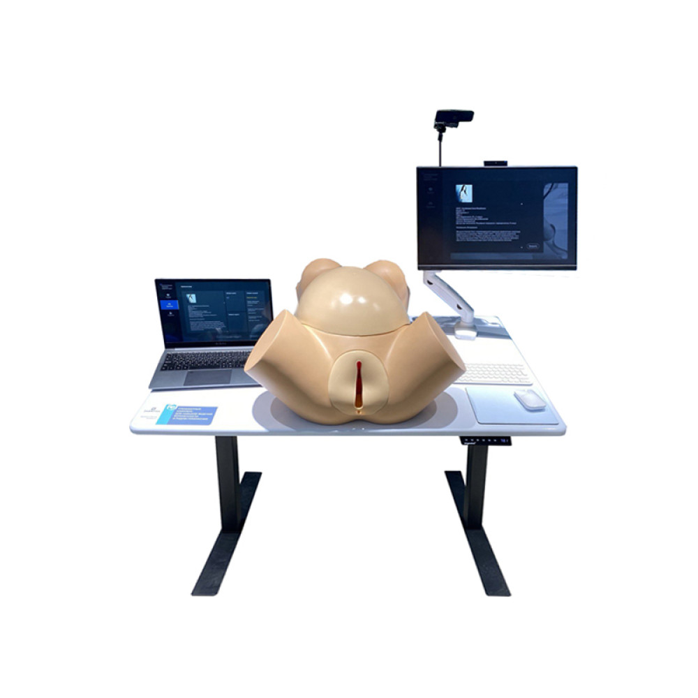 Тренажер позволяет производить осмотр с помощью зеркал, определять степень открытия шейки матки в процессе родовой деятельности. Программное обеспечение тренажерного комплекса позволяет визуализировать изменения положения плода относительно костей таза и отображать его на мониторе в 3D-формате. Кроме этого на мониторе отображаются кардиограмма роженицы, АД, пульс, партограмма, при необходимости – данные лабораторных исследований, документы врачебного наблюдения (карта беременной, данные осмотра при поступлении в стационар, сведения о перенесенных хирургических вмешательствах), а также КТГ плода с автоматическим подсчетом ПСП (показатель состояния плода). Программное обеспечение позволяет имитировать проведение инфузионно-трансфузионной терапии. Все вышеперечисленное помогает выработать и оперативно изменять тактику ведения родов при срочных физиологических родах, а также при патологически протекающей беременности, преждевременных и запоздалых родах, определять показания к оперативному родоразрешению. Создана возможность наблюдения за ходом проводимых обследований посредством видеофиксации выполненных манипуляций, с последующим их коллективным обсуждением на семинарских занятиях.