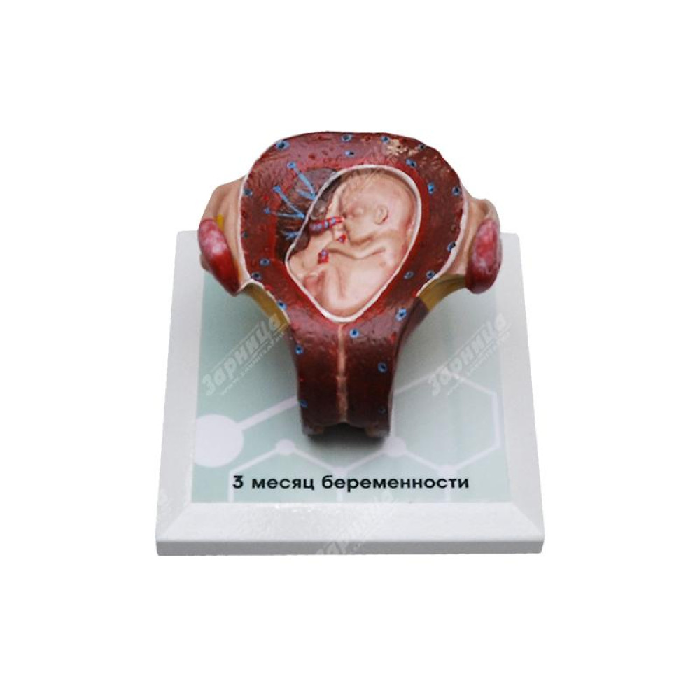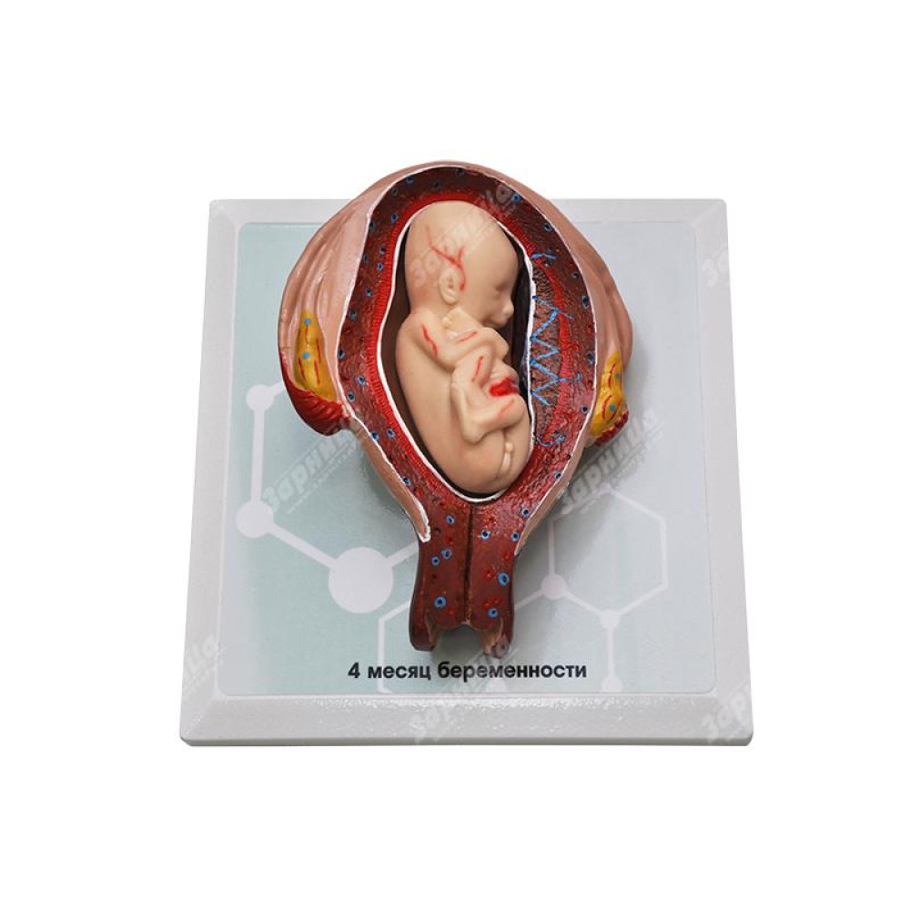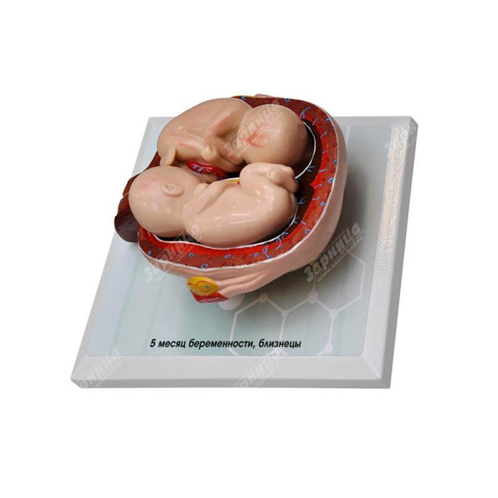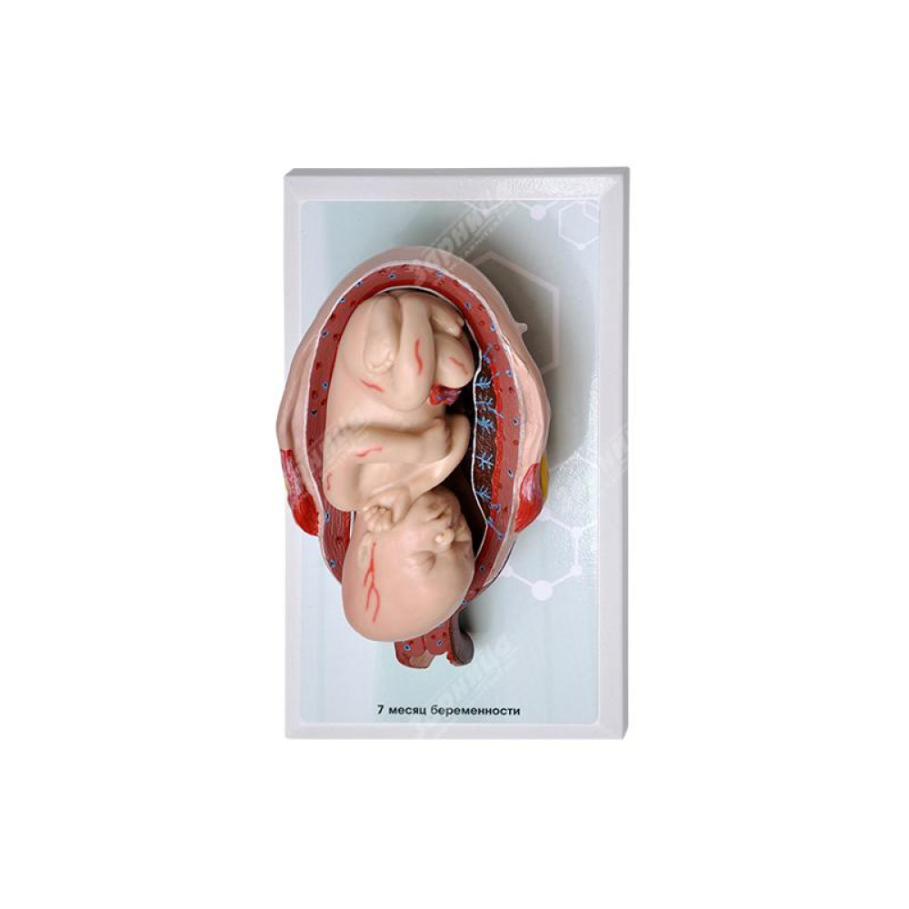 Комплект демонстрационных моделей отражает динамику топографо-анатомических особенностей этапов пренатального развития человека от одного до семи месяцев беременности. Модели выполнены из полимерных материалов, реалистично воспроизводящих свойства тканей матки, зародыша, плода, а также плаценты и пуповины. Передняя стенка матки на препаратах отсутствует, в целях визуализации ее полости и возможности извлечения плода. Отдельная модель воспроизводит вариант развития близнецов. Изделия расположены на удобных подставках, с которых при необходимости легко снимаются.