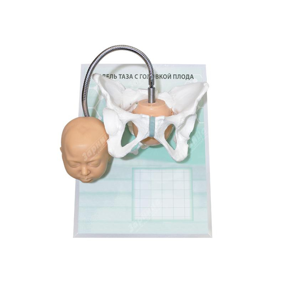 Представляет собой маркерный планшет с установленной анатомической моделью скелета женского таза и двух взаимозаменяемых головок плода: нормального и увеличенного размера, прикрепляемых к гибкому валу, что позволяет демонстрировать прохождение плода в динамике.