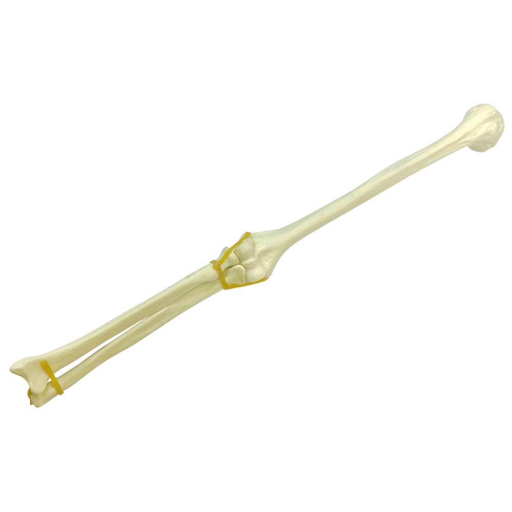 Модель представляет точную анатомическую копию натуральной локтевой кости человека. Путем подбора полимерных материалов механические свойства изделия (вес, плотность, упругость) максимально приближены к естественным прижизненным значениям.