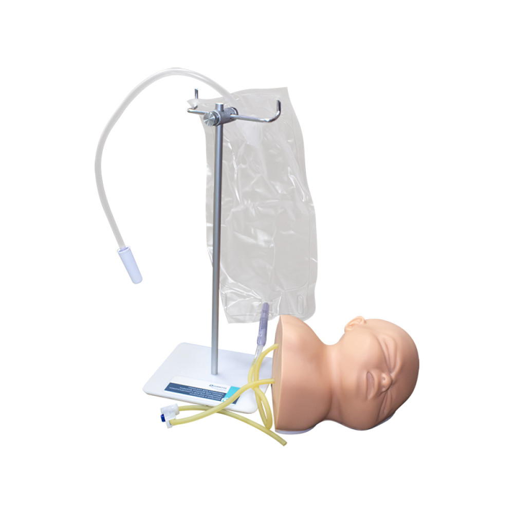 Тренажер предназначен для отработки навыков пункций вен головы новорожденного. Тренажер правдоподобно имитирует голову и шею новорожденного и содержит основные вены головы, включая поверхностные височные вены, лобные вены, надглазничные вены и др.