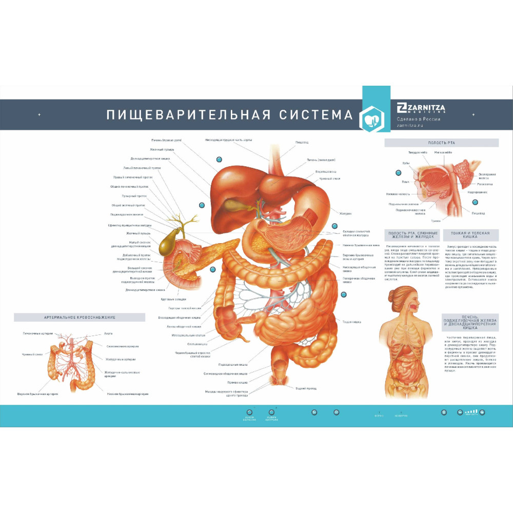 Стенд предназначен для изучения анатомии пищеварительной системы студентами образовательных медицинских учреждений.