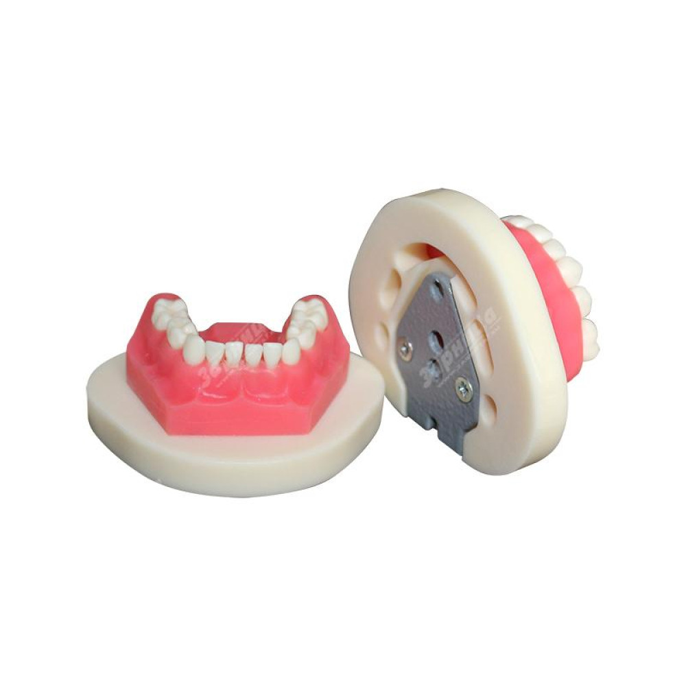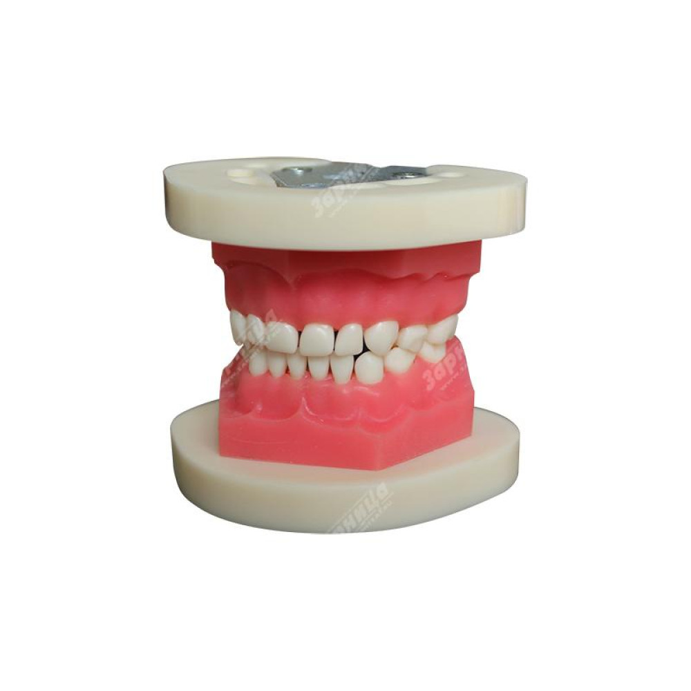 Представляет собой денто-модель верхней и нижней челюсти с временными зубами, анатомически соответствующая зубочелюстному аппарату. Смыкание реализовано в стабильной окклюзии, с комплектом из 20 модельных зубов.