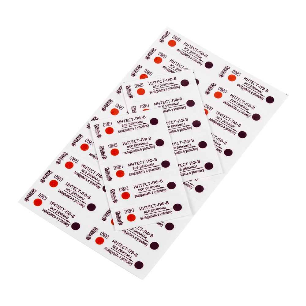Индикаторы ИНТЕСТ-ПФ-В предназначены для оперативного визуального контроля соблюдения критических переменных паровой стерилизации – температуры стерилизации, времени стерилизационной выдержки и наличия насыщенного водяного пара в паровых стерилизаторах по ГОСТ Р 51935-2002 (EN 285-95) и EN 13060-2011.