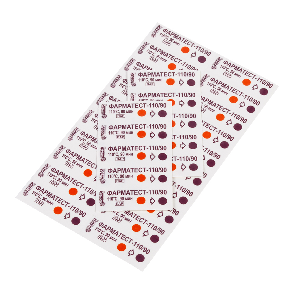 Индикаторы Фарматест-110/90 предназначены для оперативного визуального контроля соблюдения критических переменных процесса паровой стерилизации водных растворов – температуры стерилизации, времени стерилизационной выдержки и наличия