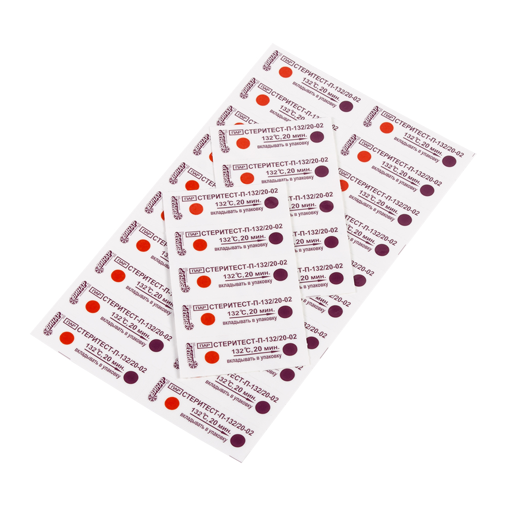 Индикаторы Стеритест-П-132/20-02 предназначены для оперативного визуального контроля соблюдения критических переменных паровой стерилизации – температуры стерилизации, времени стерилизационной выдержки и наличия насыщенного водяного пара в паровых стерилизаторах с удалением воздуха из камеры методом продувки паром.