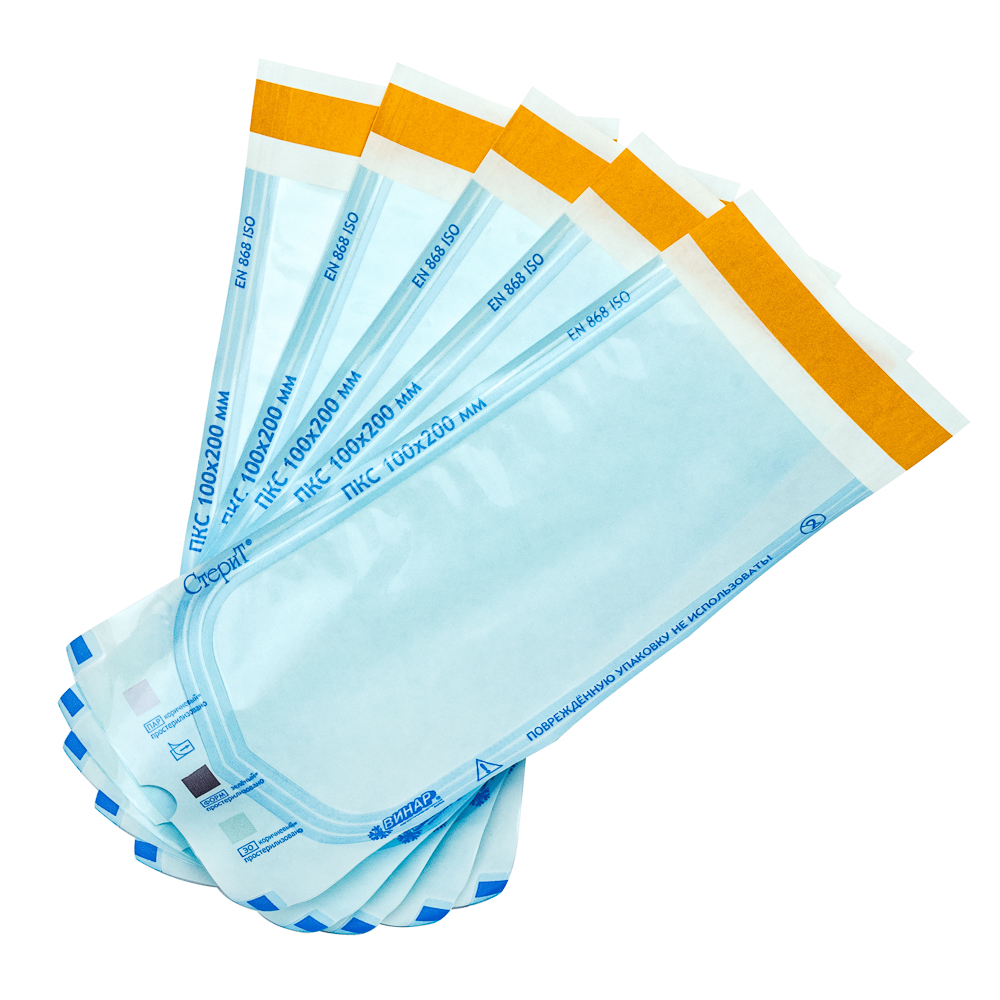 • Материал упаковочный для стерилизации изделий медицинского назначения: пакеты комбинированные самоклеящиеся «СтериТ®» с индикаторами 1 класса, 350х500мм, 100