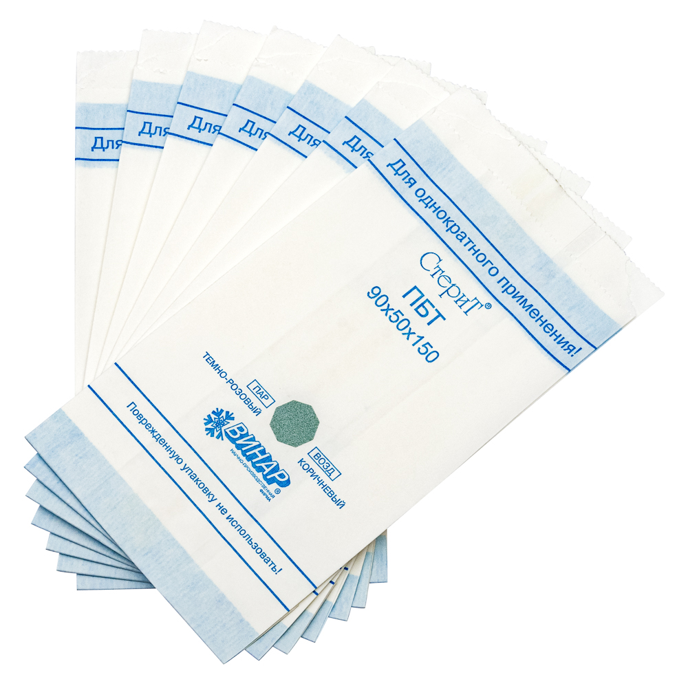 Материал упаковочный для стерилизации медицинских изделий: пакеты бумажные термосвариваемые «СтериТ®», 110х30х190мм, 100