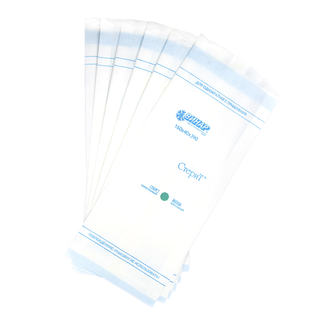 Материал упаковочный для стерилизации медицинских изделий: пакеты бумажные термосвариваемые «СтериТ®», 160х40х390мм, 100