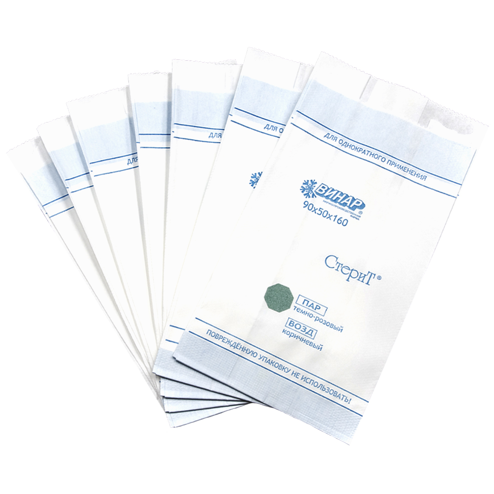 Материал упаковочный для стерилизации медицинских изделий: пакеты бумажные термосвариваемые «СтериТ®», 90х50х160мм, 100