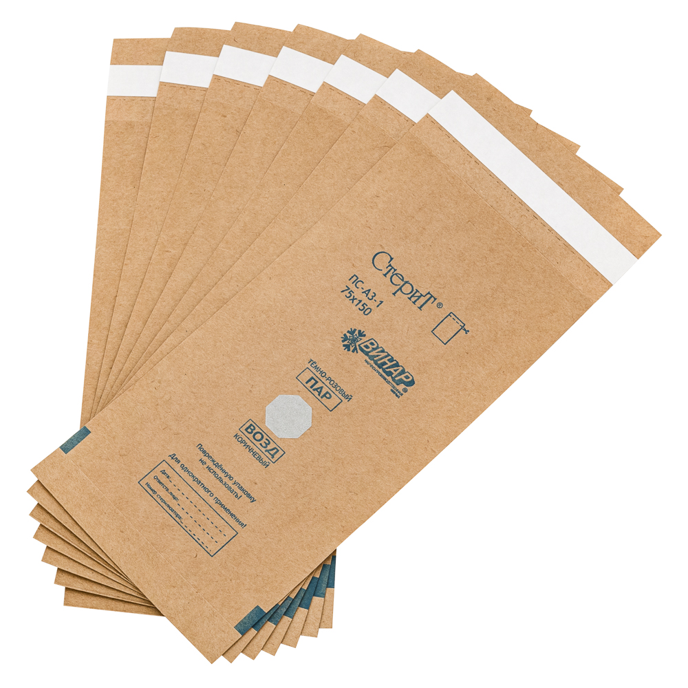 Технические характеристики Материал упаковочный для стерилизации: пакеты бумажные самоклеящиеся «СтериТ®» ПС-АЗ-1, 75х280мм, 100