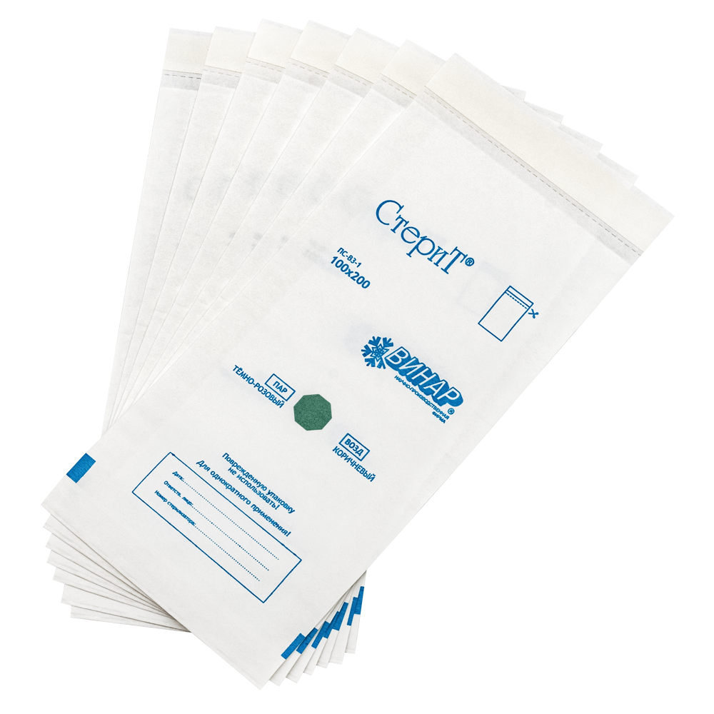 Материал упаковочный для стерилизации: Пакеты бумажные самоклеящиеся «СтериТ®» ПС-ВЗ-1, 115х200мм, 100