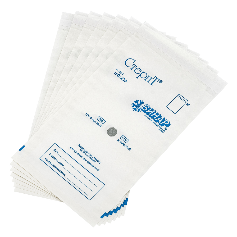 Технические характеристики Материал упаковочный для стерилизации: Пакеты бумажные самоклеящиеся «СтериТ®» ПС-ВЗ-1, 230х280мм, 100