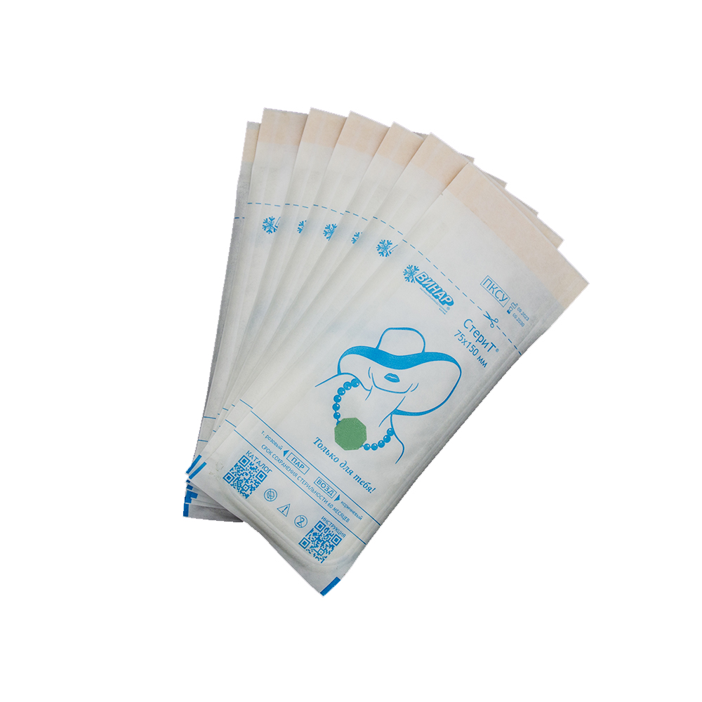 Материал упаковочный для стерилизации: пакеты комбинированные самоклеящиеся СтериТ® для паровой и воздушной, стерилизации ПКСУ, НМ, Vinar01, 75х150 мм, 100