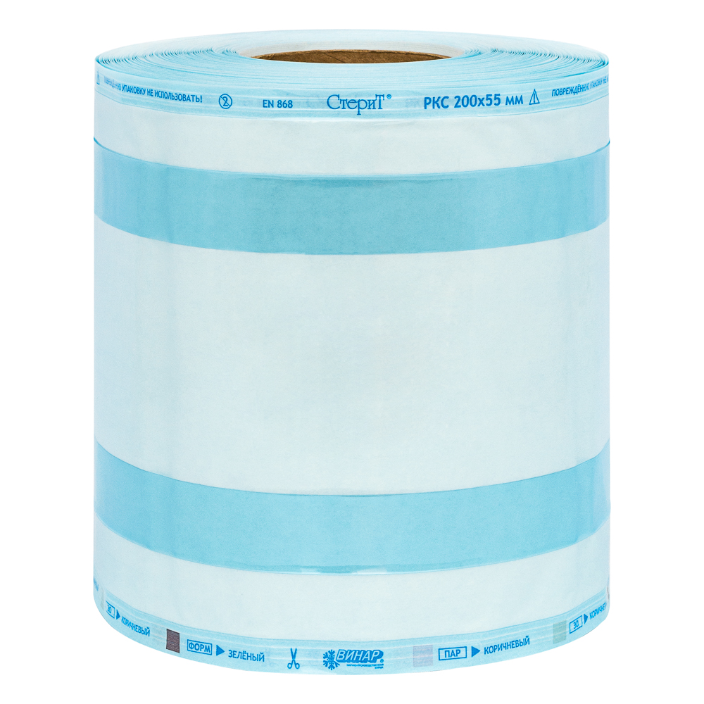 • Материал упаковочный для стерилизации: Рулоны комбинированные со складками «СтериТ®» с индикаторами 1 класса РКС, 200ммх55ммх100м